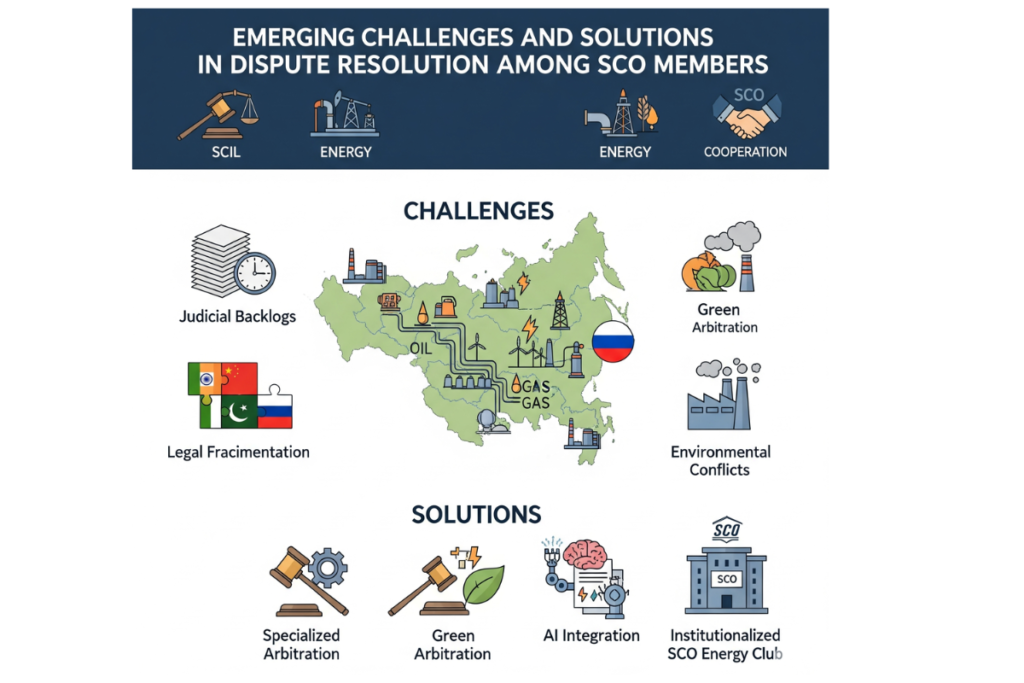 In conclusion, the Shanghai Cooperation Organization (SCO) is at a critical juncture where its ambition to become a global energy powerhouse is challenged by significant internal hurdles in dispute resolution. The immense judicial backlogs across member states, coupled with legal fragmentation, geopolitical rivalries, and conflicts between development and environmental sustainability, pose a direct threat to the success of unprecedented cross-border collaborations. To move forward, the SCO cannot rely on traditional litigation. The adoption of innovative solutions is imperative, including developing harmonized legal frameworks with specialized arbitration panels, integrating “green arbitration” protocols that mandate environmental impact assessments, and transforming the SCO Energy Club into an institutionalized mediator for energy disputes. By embracing these specialized mechanisms, enhanced by tools like artificial intelligence, the SCO can convert dispute resolution from a potential bottleneck into a catalyst for regional integration, securing its economic objectives and ensuring sustainable development for the entire region.